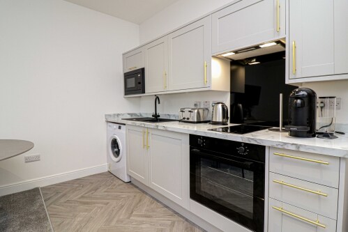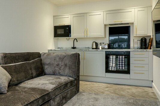 Our kitchens are fully equipped with modern amenities, including an oven, hob, microwave, kettle, and coffee machine, allowing you to enjoy home-cooked meals with ease. Relax in comfort with our premium, plush sofas, making it the perfect place to unwind after a day exploring the local area.