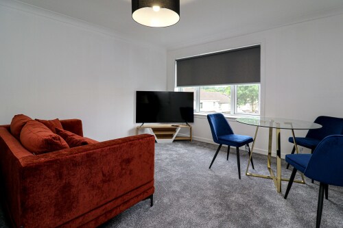 Welcome to Rouken Retreat at Invergarry, a stylish 2-bedroom apartment for up to 3 guests. Enjoy a cozy living area with a 55” TV, Sky (movies and sports), high-speed internet, a fully equipped kitchen, and a modern bathroom. Located in peaceful Deaconsbank, just 10 minutes from Glasgow city center, it’s near local amenities and Rouken Glen Park. Private on-street parking ensures a comfortable and convenient stay.